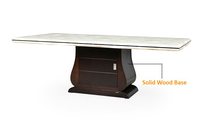 The Royaloak Venice Italian 8 Seater Marble Dining Set is designed to make a grand statement in spacious dining interiors. Featuring a premium Italian art marble tabletop, this elegant dining table showcases a smooth, luxurious finish that enhances the overall ambiance of your home. The sturdy solid wood base ensures exceptional strength and long-lasting stability. Thoughtfully crafted with a table base with storage, it offers practical space to organize dining essentials discreetly. Integrated soft closure hinges provide smooth and silent operation, adding convenience and durability. The set is complemented by stylish upholstered chairs, delivering superior comfort for extended meals and gatherings. Ideal for large families and entertaining guests, this 8 seater dining table set blends sophistication with functionality. Its premium dining table design combines elegant materials, comfort, and reliable craftsmanship, making it a striking centerpiece for contemporary homes.