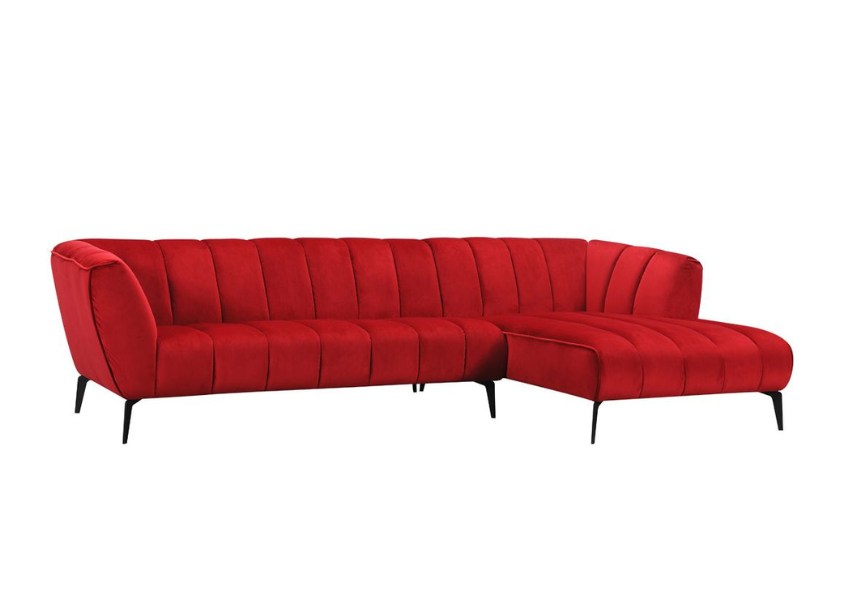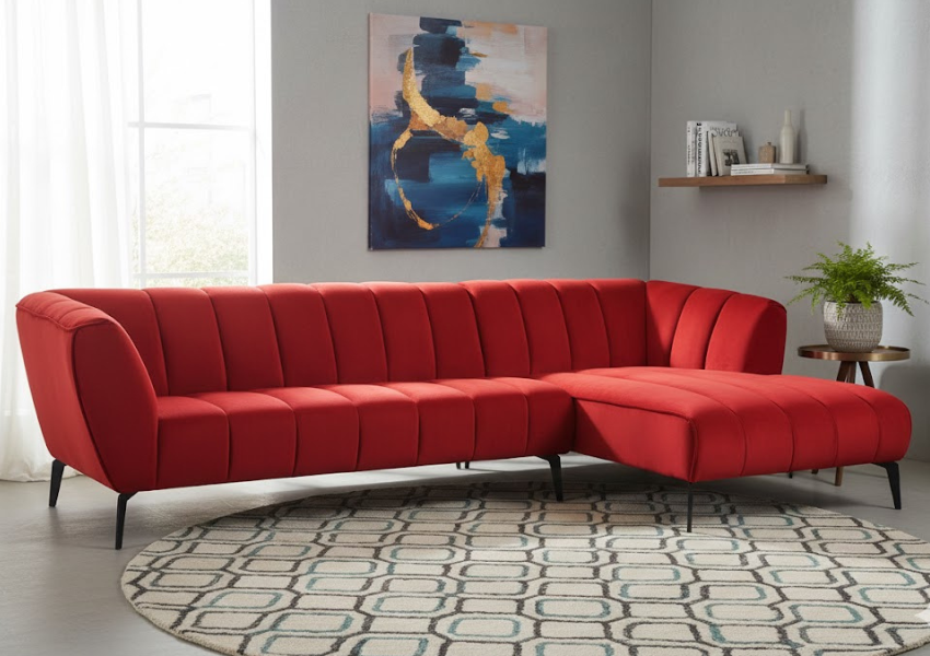 A bold and modern red fabric sectional sofa designed to add comfort, style, and character to your living space.