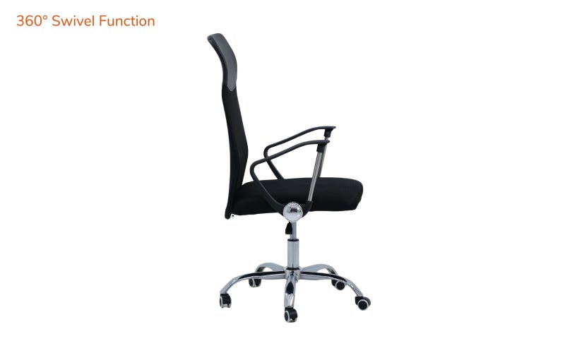 Take your comfort and productivity to the next level with the Royaloak Amaze Mesh High Back Chair, designed to make long working hours feel lighter and more relaxed. An ergonomic office chair features a tall, supportive back with a breathable, high-grade mesh that keeps you cool throughout the day, while the soft cushioned seat and built-in headrest offer cosy support from top to bottom. An ergonomic study chair for home has fixed armrests with sturdy metal support help you sit comfortably, and the smooth height adjustment and 360° swivel let you move with ease. Finished with a premium chrome-plated base and smooth rolling caster wheels, this chair adds a touch of style while staying practical. Whether you need a dependable high back chair for office work, or one of the most comfortable office chairs for daily use, then this is a great choice.