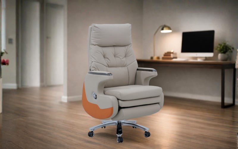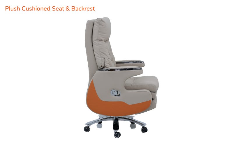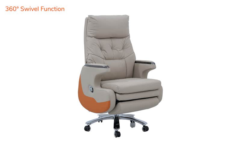 Upgrade your workspace with the Royaloak Chicago American Electric Boss Chair, where comfort meets innovation. Featuring premium leatherette upholstery, this office chair offers a luxurious feel and style. Designed with a high-back ergonomic design and a plush cushioned seat & backrest, it ensures support for long hours of work or relaxation. The one-touch power motion recliner mechanism, coupled with a built-in rechargeable battery, allows for smooth reclining and easy position control at the touch of a button. Equipped with a heavy-duty metal base, 360° swivel function, adjustable seat height, and smooth-rolling caster wheels, this chair offers both durability and mobility. Ideal for offices, home offices, conference rooms, or lounge spaces, the Royaloak Chicago American Electric Boss Chair brings a premium executive look while providing the ultimate comfort for those who demand the best in their boss chair for office work