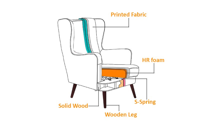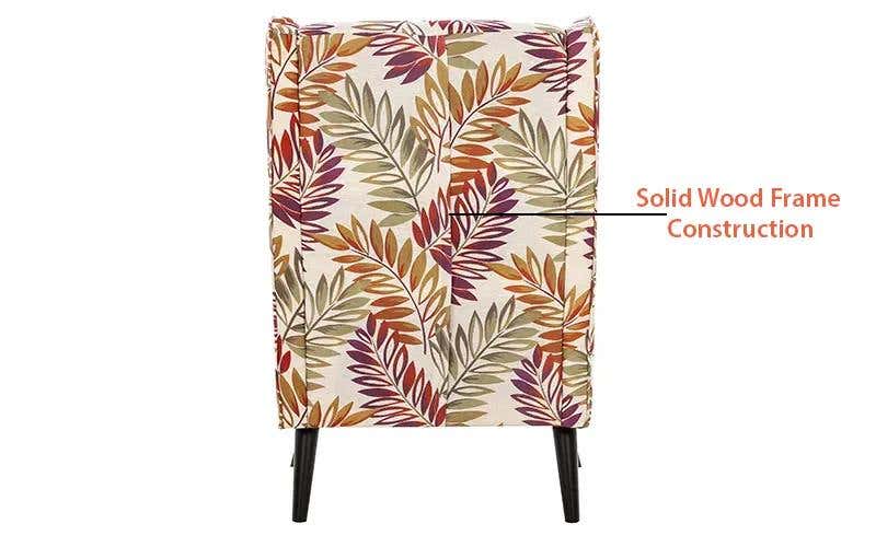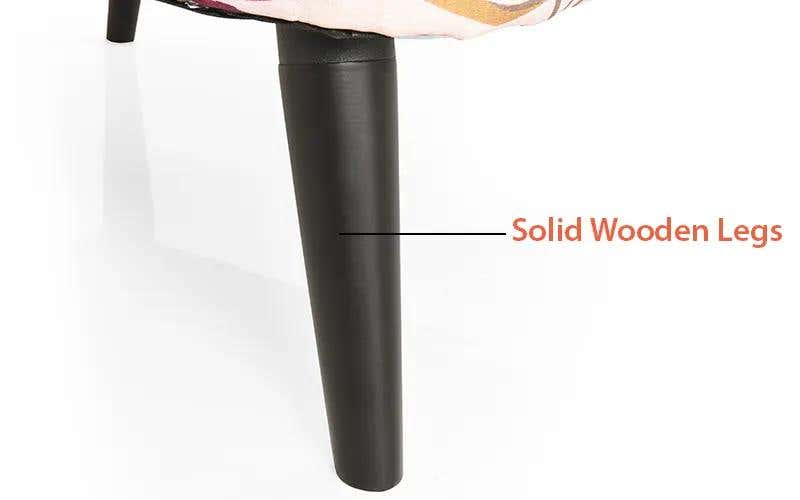 Built to withstand the test of time, this designer printed sofa chair for living room exudes durability and longevity, promising to be a cherished piece that remains an integral part of your home. Immerse yourself in unparalleled comfort with the super soft cushion that invites you to relax and unwind. The tapered wooden legs not only add a modern touch but also provide stability and support. Supported by a solid wood frame construction, this single seat sofa chair guarantees both stability and lasting durability. Elevate your surroundings with the single sofa chair for the living room, creating an ambiance of modern sophistication that captures the essence of comfort and style in one exquisite package.