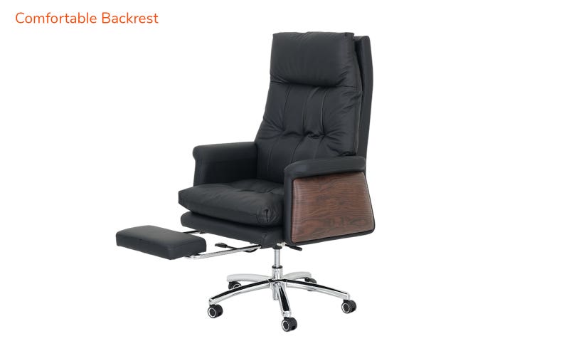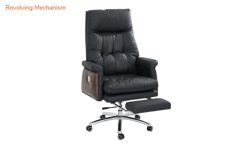 This office boss chair includes a comfortable backrest that supports your spine, with ergonomic comfort all day long. A revolving mechanism with easy mobility lets you move in any direction. The adjustable manual backrest allows you to customize the chair’s angle according to your wish. This chair offers strength and style and is built on a steel base with a chrome finish. The castors ensure smooth movement across your office floor, and the expandable padded footrest provides added support and convenience during your breaks.
