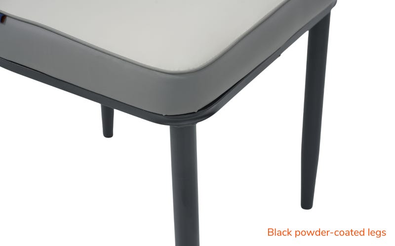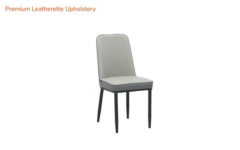Upgrade your space with the Royaloak Sepang Malaysian Dining Chair V2, thoughtfully crafted for both comfort and style. Upholstered in premium leatherette with a light grey finish and black piping, it features a high backrest with stitched detailing for an elegant touch. The padded seat and backrest ensure relaxed seating, while the ergonomic design provides reliable back support. Built on a strong metal frame with black powder-coated legs, this chair promises long-lasting stability. With its modern aesthetic, sturdy construction, and Malaysian Collection heritage, it is a perfect addition to dining rooms, family spaces, or contemporary interiors.