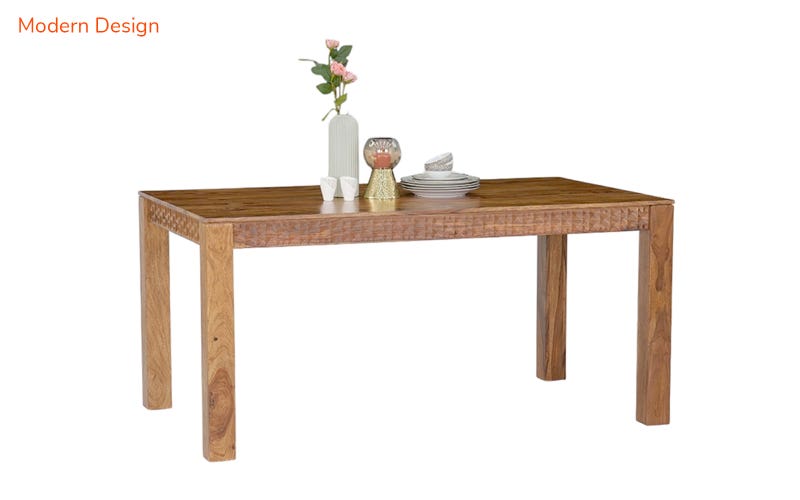The Royaloak Terence 6 Seater Sheesham Wood Dining Table is designed to complement modern homes with strength and refined craftsmanship. Crafted from premium Sheesham wood, this dining table showcases natural grain patterns that add warmth and elegance to your dining space. Featuring stylish CNC design elements, the table brings a contemporary touch while maintaining a clean, balanced look. The solid wooden legs ensure excellent stability and a durable, sturdy build suitable for everyday family use. With spacious seating for six, it comfortably accommodates meals, gatherings, and special occasions. Its sleek modern dining table design blends seamlessly with a variety of interiors, making it easy to pair with different chair styles. Whether used as a standalone piece or as part of a complete dining table set, the Royaloak Terence dining table delivers lasting performance, comfort, and timeless modern appeal.