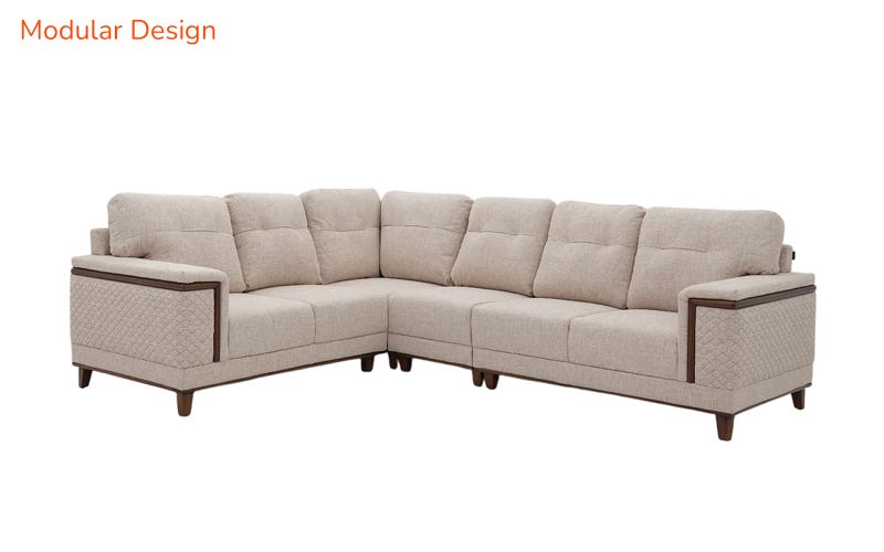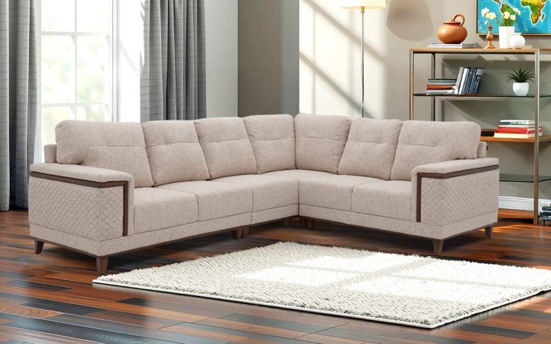 Bring a bold blend of American comfort and contemporary craftsmanship into your home with the Royaloak Texas American Fabric Corner Sofa. The sofa is enveloped in soft, airy fabric upholstery and encourages you to sink in and relax. Under the surface, built-in pocket springs in the seat cushions provide tough support and long-lasting comfort, reducing sag over time while delivering maximum relaxation. The low seating is balanced by a breathtaking tufted backrest and diamond-quilted detailing on the armrests—elements that introduce texture, depth, and a finished detail to the overall look. Its square armrests boast sophisticated solid wood details, adding to its structure and visual appeal. Solid wood skirting along the base and tapered wooden legs offer sturdy support and add a grounded, modern touch to the sofa’s silhouette. Buy five seater fabric corner sofa from Royaloak today, and enjoy the benefits of owning international furniture from India’s no.1 furniture brand. United States of America, a country that’s always ahead of the times, inspires the world with its vibrant and larger-than-life character. Royaloak American collection is an ode to the nation’s spirit – featuring a range of handpicked pieces of furniture that are big on build quality, style and finish. After all, America is where global trends begin.