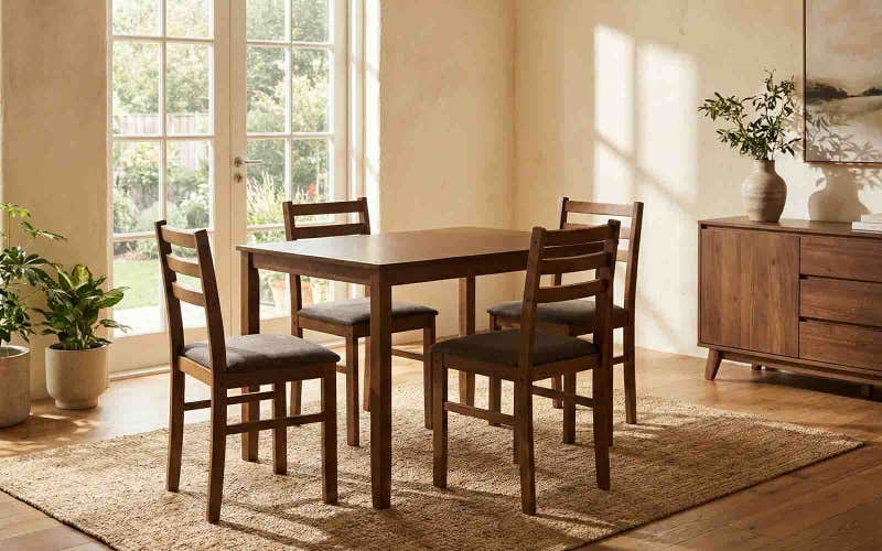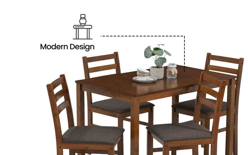 The dining table set for 4 comes with comfortable cushioned seating, making every meal relaxed and enjoyable. With its clean lines and modern design, this 4 chair dining table set blends easily with contemporary interiors. If you are looking for a reliable wooden dining table set that combines strength, comfort, and simple style, this set is a practical addition to your home.